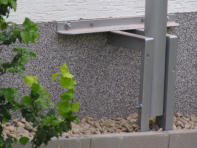 vorhandenen Wandhalterungen mit Schrauben. Die beiden Winkeleisen enden etwa 40-