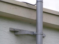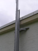 Ich nahm 2 lange Winkeleisen und befestigte diese beiderseits vom Antennenrohr an den