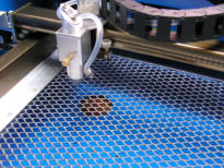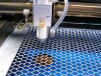 Um bessere Ergebnisse zu erhalten, habe ich die Laser - Gravur Maschine ein wenig umgebaut.1.Den Laserkopf mit Linse und Umlenkspiegel habe ich gegen einen Laserkopf mit verstellbarem Focus und Luftzufuhr ersetzt. Da beiden originalen Lasern der Focus nicht eingestellt werden konnte waren die Ergebnisse nicht so gut, oder man hätte das Werkstück entsprechend unterlegen müssen.2.Durch die Luftzufuhr am Laserkopf kommt es nicht mehr zu Verbrennungen am Schneiderand. Der Luftschlauch wird durch eine Schleppkette nach außen geführt. Der Luftkompressor steht außerhalb des Lasers.3.Die original Werkstückboden wurde entfernt und durch einen ALU-Rahmen mit Streckmetall - Gitter ersetzt. Außerdem habe ich diesen ALU - Rahmen dem Focus entsprechend etwas tiefer gelegt.