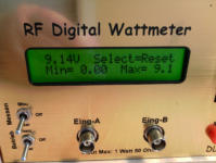 Ein Wattmeter sollte der Amateurfunker, der nebenbei auch noch bastelt, sein Eigen nennen. Da ein präzises Wattmeter ein sehr kostspieliges Messgerät ist, habe ich mich für den Selbstbau entschieden.Ich bin im Internet fündig geworden und habe eine Anleitung vom OM OZ2CPU als Vorlage genommen. Das Wattmeter verfügt mit einem Frequenzbereich von 1 KHz bis 500 MHz und einem Dynamikbereich von ca. 90 db über professionelle Eigenschaften. Es ist Menügesteuert und verfügt über verschiedene Messmöglichkeiten. Durch den zweiten Eingang sind auch SWR-Messungen möglich. Die Schaltung des Wattmeters lässt sich in mehrere Baugruppen unterteilt betrachten. Der geringe Schaltungsumfang ergibt sich dadurch, dass alle wesentlichen Funktionen mit den Komponenten AD8307 und dem PIC16F876 realisiert werden.Die analoge Signalaufbereitung, die für die Genauigkeit des Ergebnisses maßgeblich ist, übernehmen die separat aufgebauten Messwandlerschaltungen mit dem AD8307. Diese Messwandler wandeln die HF-Spannung in eine logarithmisch abgestufte Gleichspannung. Den Rest der Signalverarbeitung besorgt der Mikrocontroller PIC16F876, der mit Hilfe der vom Entwickler geschriebenen Software die folgenden Funktionen realisiert:•Digitalisierung der von den AD8307 gelieferten Gleichspannung•Steuerung und Anzeige des Displays•Abfrage der Bedienelemente•Gleichspannungsmessung der Batterie, Netzteil oder an den MessbuchsenEine weitere Baugruppe ist das LCD-Display. Mit zwei Zeilen zu 20 Zeichen handelt es sich um ein marktgängiges Display. Als letzter Schaltungsteil ist die Stromversorgung zu nennen. Der Spannungsregler von 5V ist am Eingang durch eine Diode vor Verpolung geschützt. Die Stromversorgung erfolgt wahlweise über ein Steckernetzteil mit einer Gleichspannung zwischen 8 – 12 V oder über Batterien in einem vorhandenen Batteriefach. Weitere Einzelheiten zur Hard- und Software erfahren Sie auf der Website von OZ2CPU.Das HF-Wattmeter wurde in einem durch Alufolie abgeschirmten Sperrholzgehäuse aufgebaut. Die Beschriftung der Bedienelemente und auf der Vorder- und Rückseite wurden auf einer Kunststoffplatte mit einem Laser beschrifteten und ausgeschnittenen.